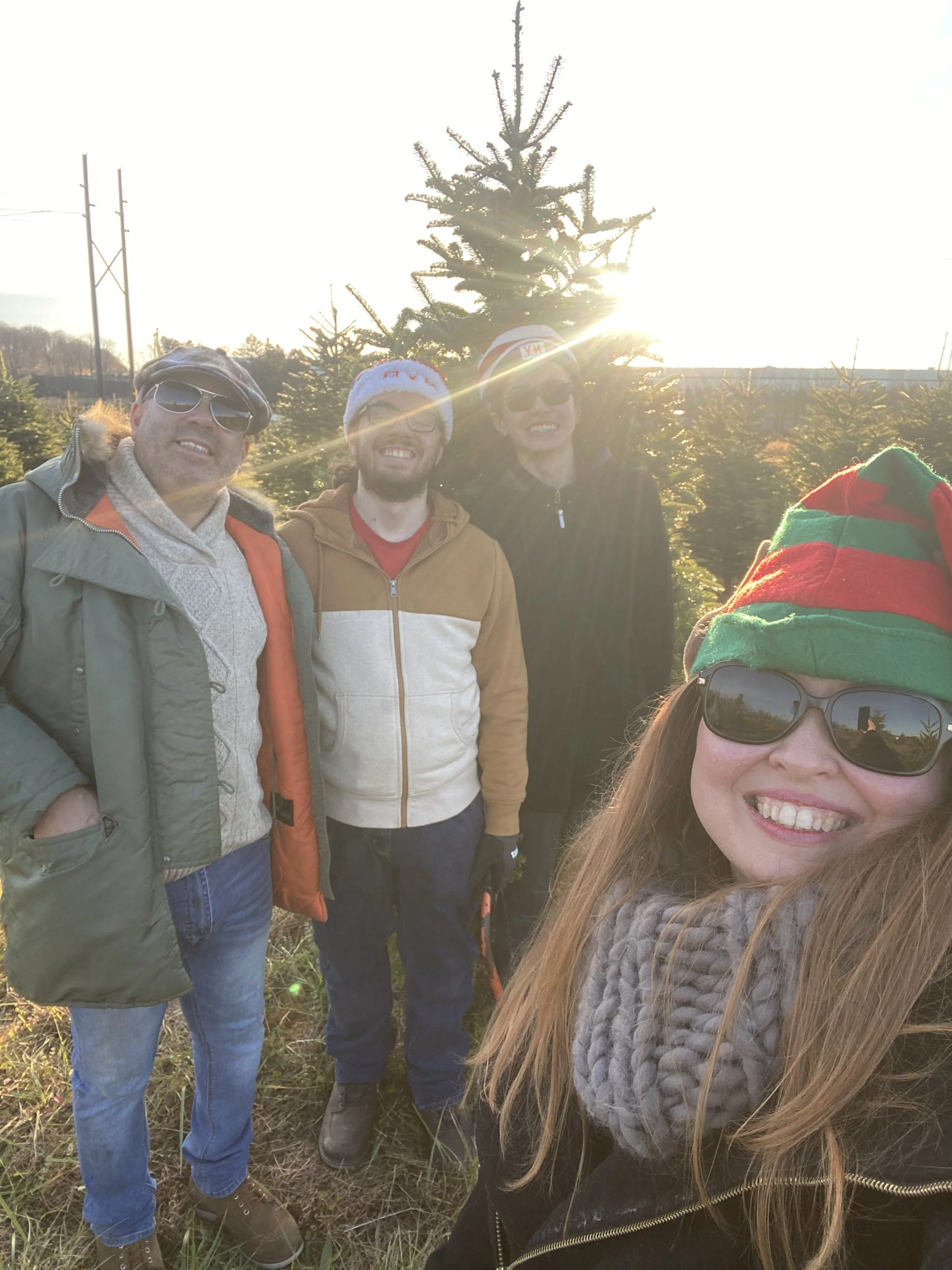 Saturday we went Christmas tree shopping! A long car drive towards my parents and then off to the first tree farm. Yes, we go to two different tree farms. The first tree farm is more accessible for my parents and my Mom’s walker. The second tree farm is more rustic. My boys and I prefer the hunt for the imperfect perfect Christmas tree. Hunting for our own tree and cutting it down ourselves has been a long standing family tradition since I was a kid and one that my husband and I have kept with our boys. Oh the memories!